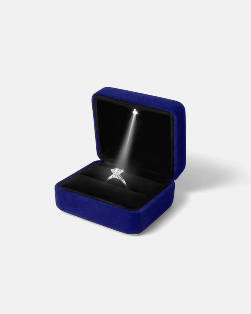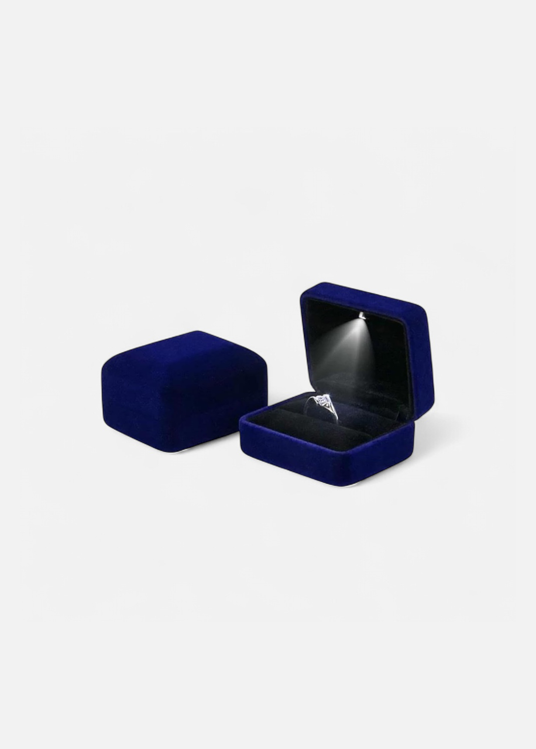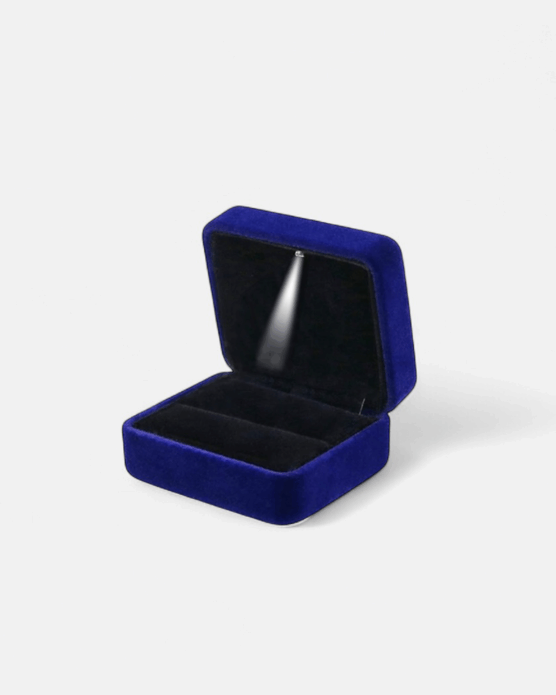 Überrasche deinen Lieblingsmenschen mit einem unvergesslichen Moment: Diese edle Ringbox aus Samt (Velvet) in Blau überzeugt durch ihre samtige Haptik, das moderne Design und die integrierte LED-Beleuchtung, die jeden Ring perfekt in Szene setzt.