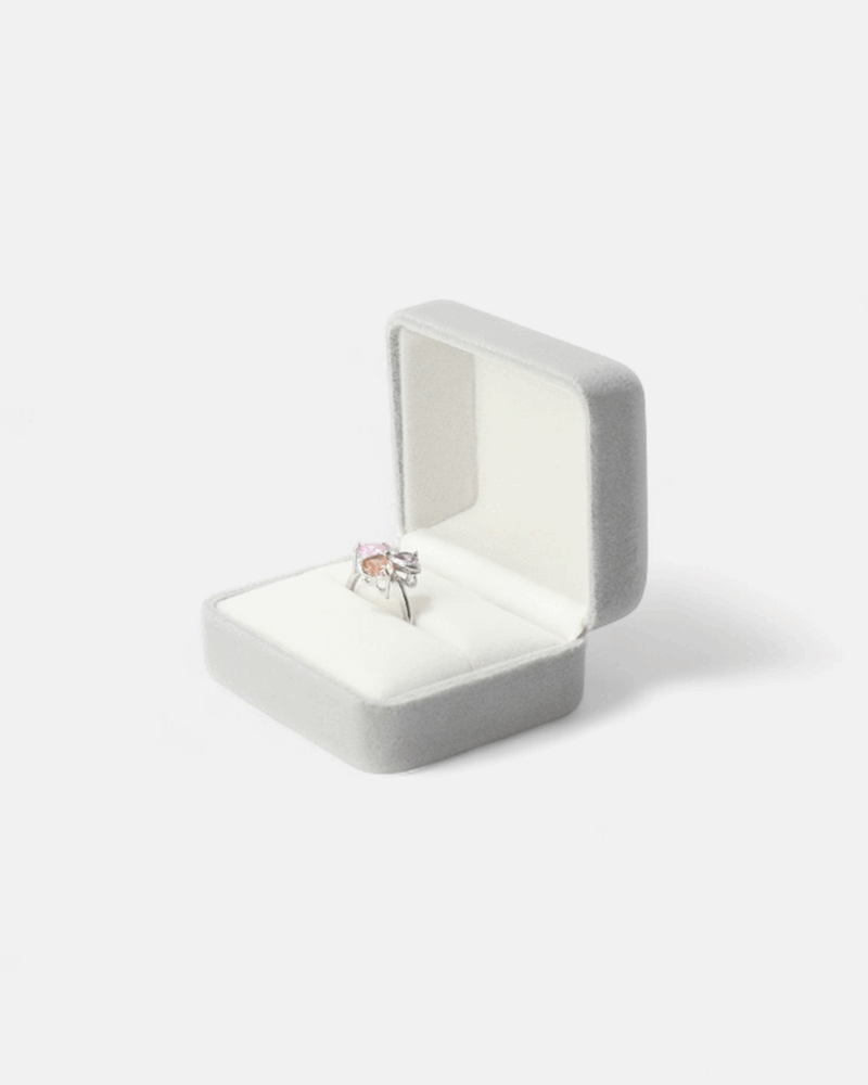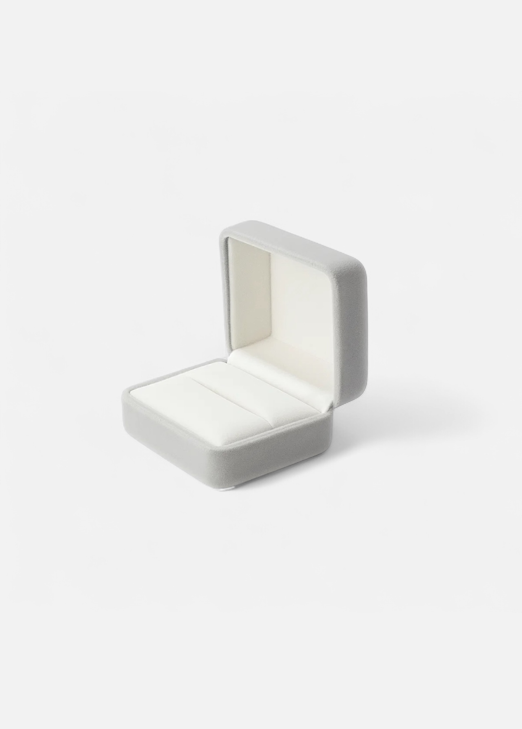 Schlicht, modern und elegant – diese Schmuckschatulle aus hochwertigem grauem Samt ist die ideale Wahl, um Ihre wertvollsten Schmuckstücke stilvoll aufzubewahren oder zu verschenken. Das helle, cremefarbene Innenfutter sorgt für einen edlen Kontrast und rückt Ringe und Schmuck perfekt ins Licht.