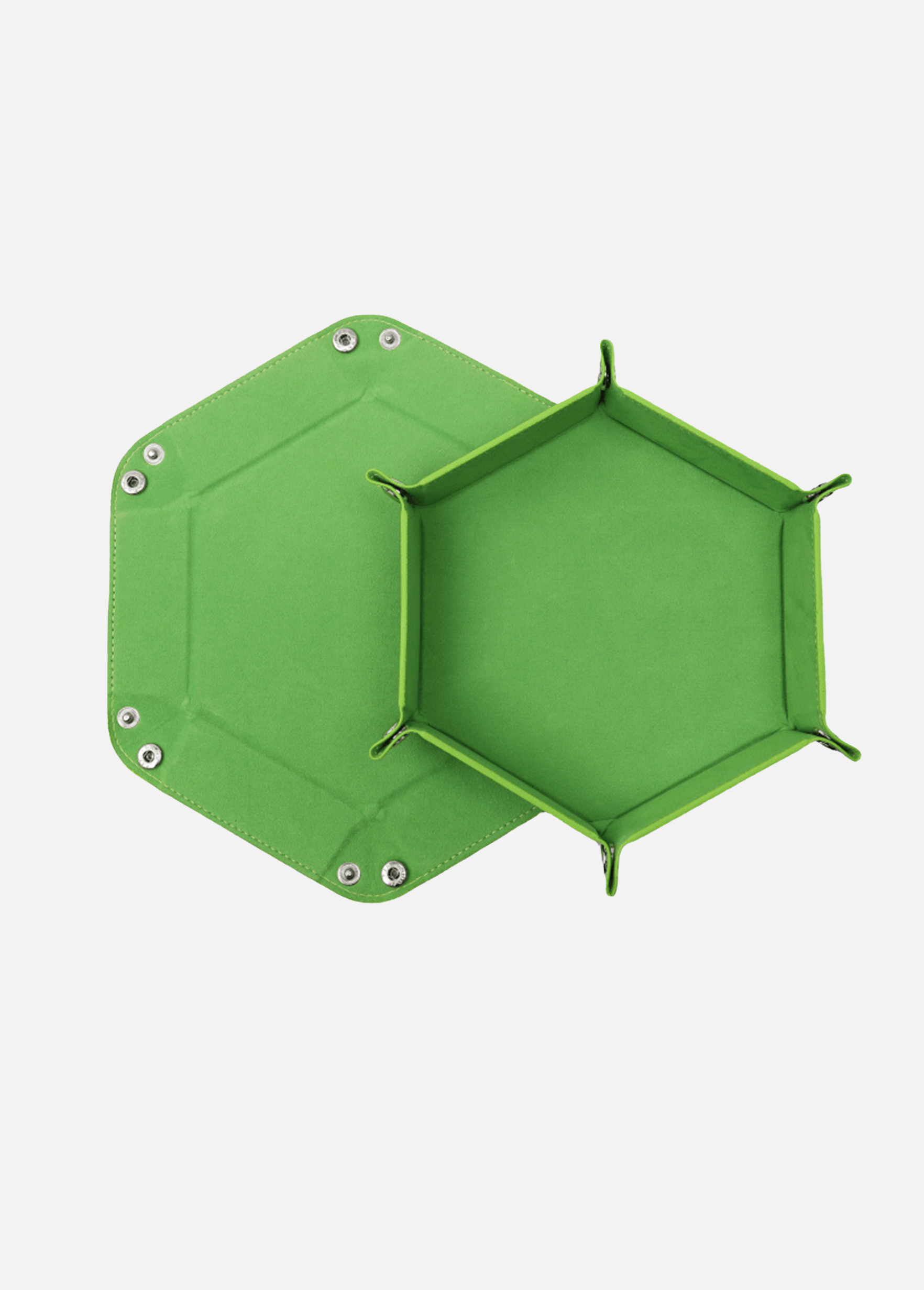 Dank der faltbaren Druckknopf-Konstruktion lässt sich der Würfelteller schnell auf- und abbauen. So ist er ideal für unterwegs, Reisen oder den flexiblen Einsatz zu Hause. Durch die sechseckige Form bleiben Würfel sicher im Tablett und können nicht vom Tisch rollen.
