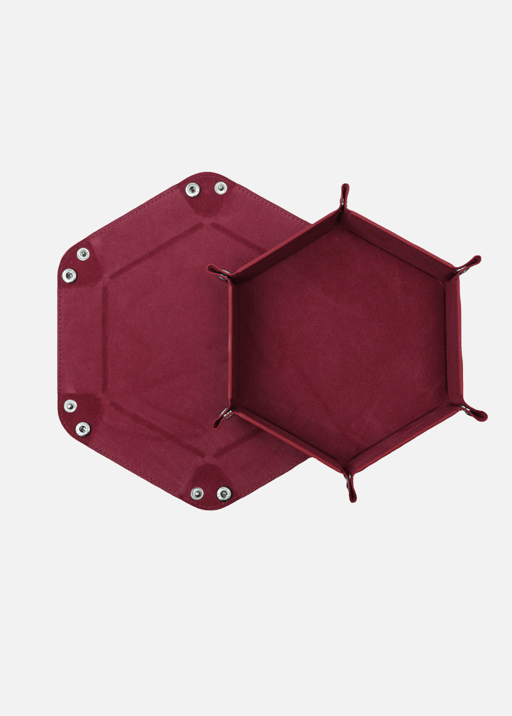 Der faltbare Würfelteller im Hexagon-Design ist die perfekte Würfelunterlage für spannende Spieleabende. Außen aus PU-Leder gefertigt und innen mit weichem Samt ausgekleidet, schützt er Tischoberflächen zuverlässig und sorgt für ein leises, angenehmes Würfelerlebnis.